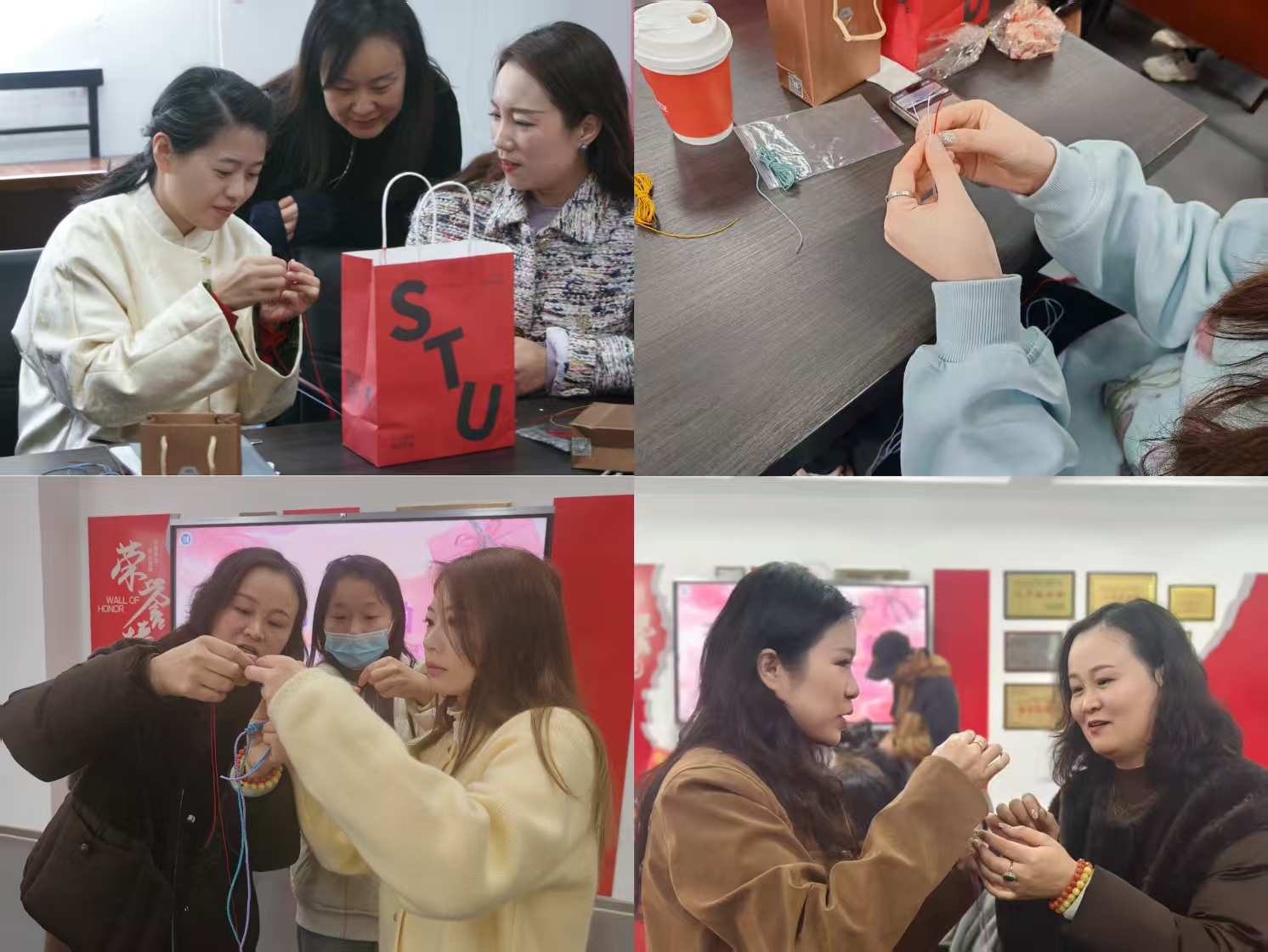 随后,副院长邢语与合肥演艺集团的演员们共同呈现了一场精彩的文艺表演,赢得了在场教师的热烈掌声。此外,学院还准备了精美的茶歇和手工艺品材料。在专业人员的指导下,女教职工们亲手制作了手串和手绳,活动现场充满了欢声笑语,气氛温馨而愉快。