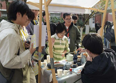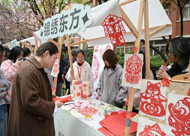 活动现场,“花路市集”创新设置传统文化互动长廊,由15个精品社团结合社团特色打造展区。小蚂蚁手工协会的“你剪我猜”剪纸游戏、建筑与工程协会的漆扇制作体验、本草学社的“蒙眼辨百味”中药挑战等特色项目吸引师生驻足。师生持“通关文牒”完成8项非遗挑战后,可兑换校园文创礼品。