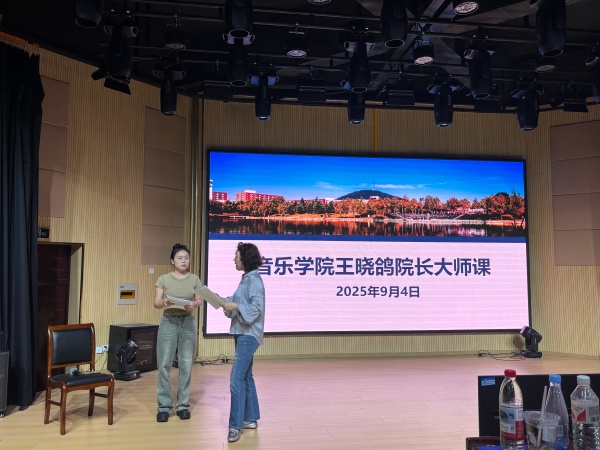 本网讯(通讯员:宋文玉)为进一步提升音乐学院青年教师的教学水平与专业素养,夯实学院师资队伍基础,9月4日,音乐学院成功举办了一场高水平的声乐大师课。本次大师课由音乐学院院长、著名声乐教育家王晓鸽亲自带队并担任主讲,学院全体青年教师齐聚一堂,共同聆听了这场学术盛宴。