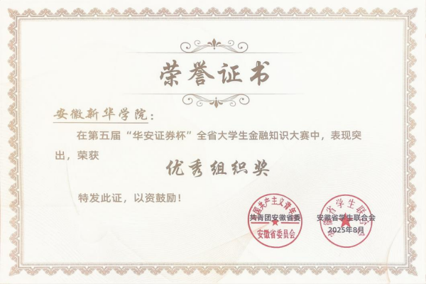 由共青团安徽省委员会、安徽省学生联合会和华安证券股份有限公司联合主办的“华安证券杯”安徽省大学生金融知识大赛辩论赛专项活动圆满落幕。财会与金融学院学院组建的辩论队凭借硬核实力与出色表现,一举包揽大赛“优秀组织奖” 及辩论赛专项活动 “优秀组织奖” 两项集体荣誉,参赛的五名队员全部荣获 “优秀个人奖”。