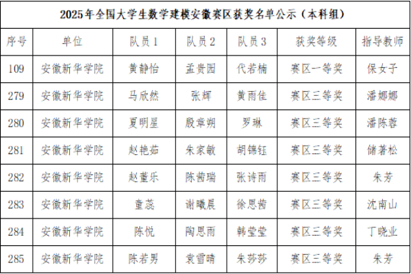 永利官网学子在2025年高教社杯全国大学生数学建模竞赛中首获安徽赛区本科组一等奖