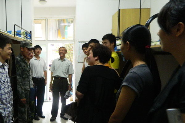 本网讯(周倩)为进一步了解军训以来学生宿舍内务整理情况,9月11日上午,信息工程学院院长程家兴教授、副院长钱颜娇带领全体主管以上人员同教官一起检查12#楼、13#楼和15#楼新生宿舍。全体辅导员老师陪同检查。