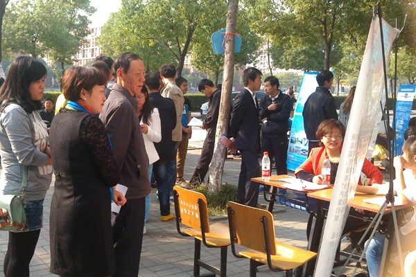 本网讯(通讯员 祝静静)为切实做好毕业生就业工作,大力构建毕业生与用人单位的交流平台,10月22日下午,信息工程学院于在教学13号楼前举办了2014届毕业生专场招聘会。