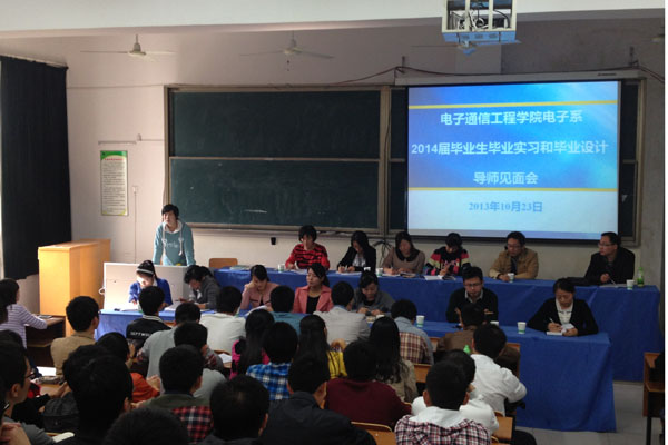 本网讯(通讯员  张笑鸿)11月初,电子通信工程学院各系分别给2014届本科毕业生开展毕业设计及毕业实习师生见面会。这是2014届本科毕业生毕业设计及实习系列动员活动之一。