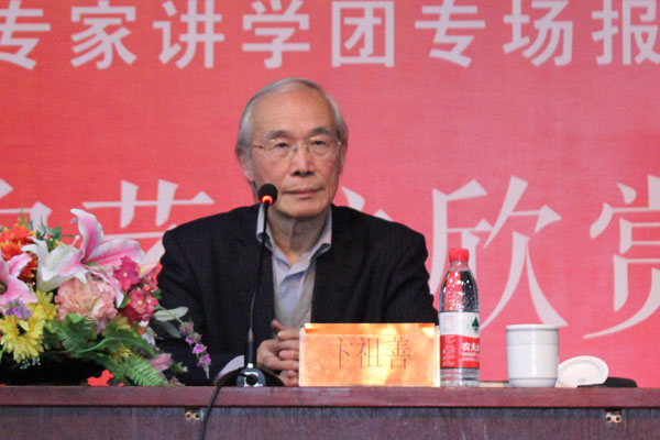 报告会上,卞祖善从艺术鉴赏角度对交响乐作了深入阐述,分析了交响音乐中交响曲、协奏曲、乐队组曲、序曲、交响诗的特点和历史,展现出了交响乐独特的魅力。卞祖善多次提到“交响乐并没有想象中的那么高不可攀,深不可测。”他说:“我们对任何事物都有一个认识的过程,这个过程都是由浅入深、循序渐进的。交响乐也不例外,任何高深的音乐都是要从浅显的开始,逐渐深化。”为了让观众更具体的感受交响乐,卞祖善边讲边唱,以浅入深、语言风趣幽默。最后,在全场观众的热烈掌声中,卞教授结束了此次讲座。