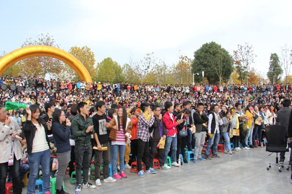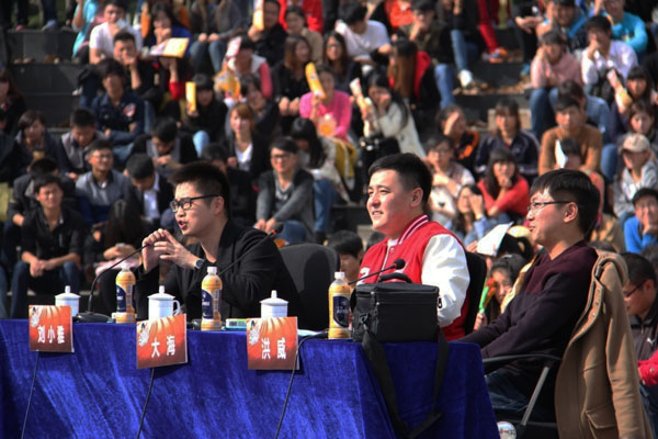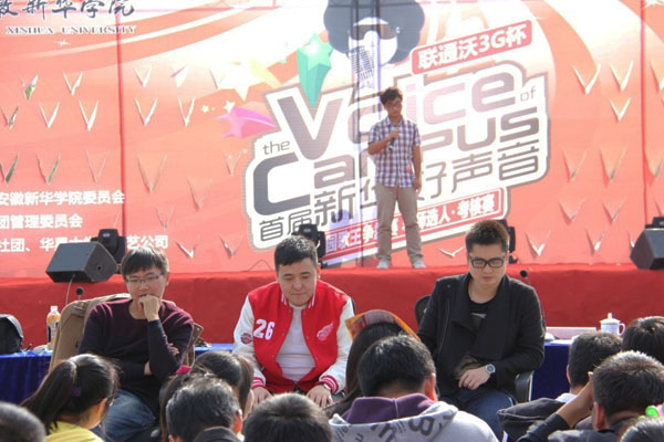 本网讯(通讯员 洪威)11月16日,首届“新华好声音”校园歌王争霸赛导师选人赛、导师考核赛在校如琴湖音乐广场精彩上演。央视青年歌手大奖赛安徽赛区通俗组冠军、安徽电视台《当红不让》栏目评委刘小雅,安徽电视台节目主持人大海,校团委洪威老师担任本届好声音的导师。比赛从中午12点一直持续到晚上10点,共有3000多名同学观看,现场气氛十分热烈。
