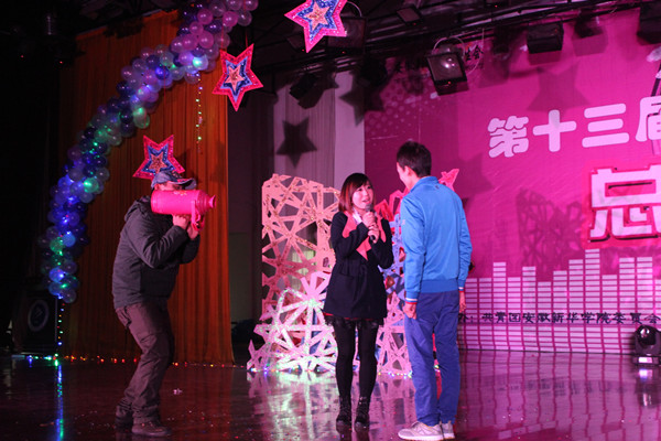 此次比赛选手们充分展现了当代大学生的青春与活力,共12组选手最终进入决赛。比赛分为三轮,内容涵盖了相声、小品、歌唱、魔术和舞蹈。伴随着柔美的灯光,优雅的音乐伴奏,1号选手结束了第一轮的比赛。 随后,其余十一组选手分别进行才艺展示,将比赛带入白热化阶段的当属11号选手王梦飞、刘晓倩的曲艺表演《大驾光临》了。《大驾光临》是根据当红相声演员贾玲的相声改编 ,在表演的时候,选手们充分利用自身的特点,说着地道的方言,最后他们以95.17全场最高分直接晋级第三轮。在第三轮比赛中,他们通过演绎经典相声《大话捧逗》,诙谐幽默的语句,滑稽的动作获得全场热烈的掌声,最终获得此次校园才艺大赛的第一名。
