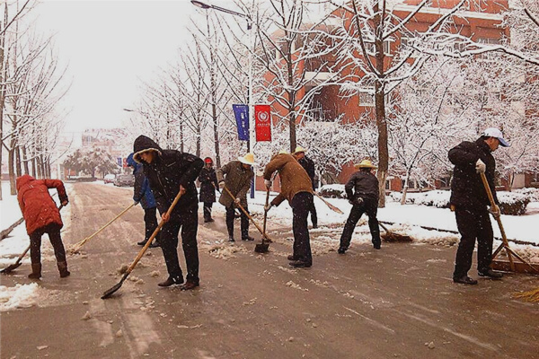 本网讯(通讯员 董梅、洪威)2月17日夜,合肥普降大雪,突降的大雪给师生出行带来诸多不便。为了保证广大师生的出行安全,18日一大早,总务处便组织全体人员分区域清扫校园路面积雪,做好校园主干道及各食堂、开水房等交通要道的路况保障。