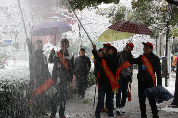 各二级学院和有关单位也开展扫雪除雪工作。为减轻冰雪对树木造成的不利影响,永利官网青年志愿者协会的志愿者第一时间加入到清扫积雪活动中,采用竹竿敲打的方法把堆积在树枝上的积雪敲落。