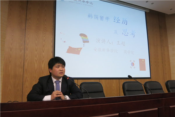 本网讯(胡晶晶)为拓展广大师生的视野,加深大学生对韩国文化的了解。3月14日下午,商学院留韩博士王超老师在学术报告厅举办了题为“韩国留学经历及思考”的交流报告会。商学院50多名师生参加了本次交流报告会,报告会由该院副院长邵玲主持。