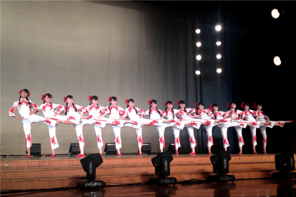 此次演出,大学生艺术团带去了精品舞蹈《剪纸姑娘》。伴随着音乐的节奏,舞者们翩翩起舞,手上不停的变换着动作,而这些动作又无一不在展示剪纸的过程。她们时而分散,时而聚拢,表演得到了现场观众的热烈掌声与喝彩。一曲终了,这群可爱的姑娘再次围拢在了一起,她们摆出了各种不同的姿势,组合成一个美丽的剪纸图案,再一次完美诠释了中国民间传统艺术——剪纸。永利官网艺术团表演的舞蹈得到了中科大学生舞蹈团团长王梦琳的称赞,她说:“这是我第一次看到新华学院的学生跳舞,剪纸姑娘太赞了,满场都是掌声,舞蹈动作齐,特别是难度较大的动作也能做到整齐划一,队形变化也很优美。”