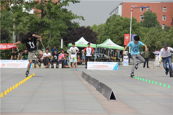 本网讯(学生记者 马闵,摄影 陈亮)为了促进安徽省各高校轮滑爱好者的交流,进一步推广轮滑运动。5月28日,安徽省“大学生活力运动季”首届高校轮滑交流赛在永利官网图书馆广场和篮球场举行。参赛选手共有200多人,分别来自安徽大学、安徽财经大学、黄山学院等31所大学。全国锦标赛暨世界锦标赛选拔赛花式刹停冠军赵振华来永利官网观看了比赛。永利官网轮滑社的吴月婷、潘晓敏、张紫薇及尹浩、郭泽贵,施小鹏分获新人速滑3×200米接力赛女子组和男子组第二名。
