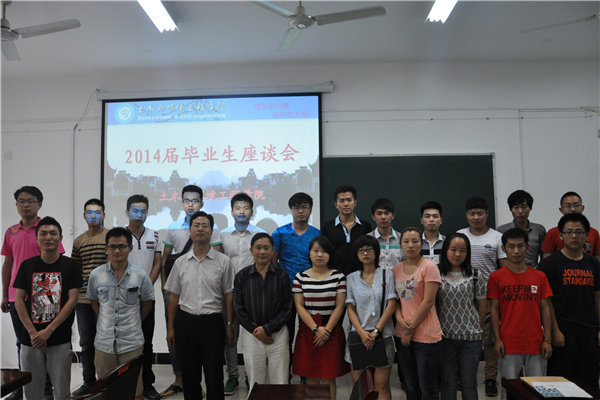 座谈中,同学们共同回忆了在校期间的学习和生活,深切地表达了对老师的感恩,对同学的不舍和对校园的留念。老师们也借助这个机会再次为毕业生分析了就业前景和当前的就业形势,教育同学们要脚踏实地,树立自信,开拓创新。方达宪勉励毕业生勤于学习,勇于实践,将科学知识与社会实践紧密结合起来,踏实工作,不断进取,增强本领,自强不息,早日成为业内精英、社会栋梁。会后,该院领导与毕业生们合影留念。