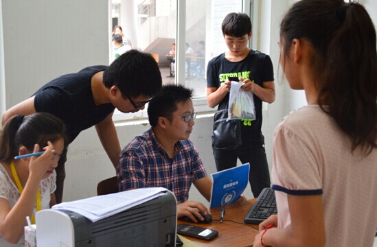 全体师生以优质的服务迎接新生,耐心地与家长沟通,为家长及时安排座位休息,领着2014级新生穿梭于报名、登记、行李及军训服等新生办理入学手续必经的各个地点,即使冒着雨也毫不退缩。