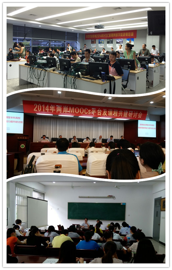 程家兴教授首先对暑期外出学习锻炼情况作了简要介绍,参加外出学习锻炼的教职员工分别就自己外出学习锻炼情况进行了具体汇报。叶承琼、王迎云在杭州为期11天的学习过程中,分别学习了计算机网络基本知识、H3C产品及技术、数据中心解决方案等知识,同时参观了H3C公司,进行了考试及认证,获得由杭州华三通信技术有限公司统一签发的“H3C认证网络工程师”证书以及“H3C认证讲师”证书。徐梅、贺爱香老师赴滁州学院,参加滁州学院与台湾教育云产学研联盟(ATEC)联合举办了“2014年两岸MOOCS平台及课程共建研讨会”了解慕课教学的前景、现状、MOOCS平台开发与课件制作、MOOCS与传统教学模式的理解及MOOCS发展中所面临的问题。王美荣、曾莉、史先桂等老师分享了下企业实践的见闻和收获。他们表示,通过暑期学习锻炼,开阔了视野,提升了个人业务能力,对于今后的工作帮助很大。