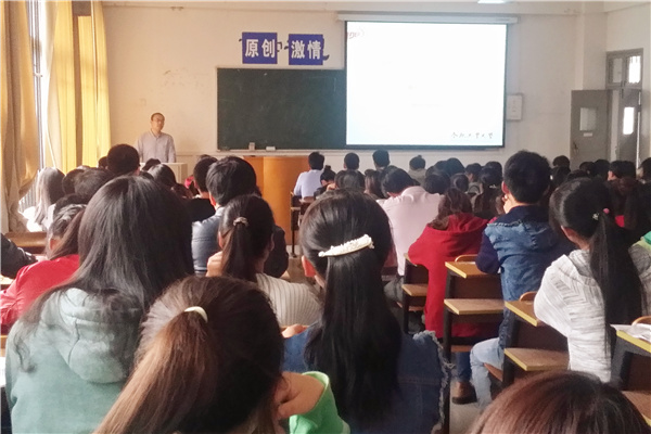 王忠副教授开门见山,首先向同学们简要科普了全国大学生广告艺术大赛的基本情况,并从大广赛安徽赛区竞赛组织以及安徽赛区评审办法说明等方面补充说明。王忠结合往届大赛作品和第六届的大赛要求详解了大广赛获奖作品的创意表现,向同学们阐明了什么是“说广告”、什么是“广告说”以及什么是“说评委”三个重要概念。王忠博士以风趣的语言向同学们传授广告创意的经验,并结合案例传授专业性强的广告知识,台下同学反应热烈。