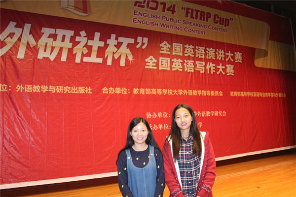 本网讯(胡钰)2014年“外研社杯”全国英语演讲大赛安徽赛区的复赛于10月31日至11月2日在安徽财经大学龙湖东校区举行,来自全省40所高校的80名选手参加了此次比赛。永利官网选派郭倩倩和徐梦晨两位同学分别代表英语专业组和非英语专业组参赛。