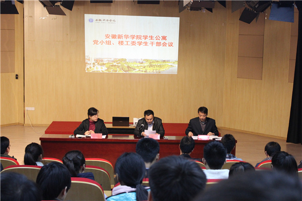 本网讯(孙影湛)为进一步推进党组织进公寓,加强学生公寓安全、卫生管理工作,11月11日,学生处在文化与新闻传播学院新闻演播厅组织召开了学生公寓党小组、楼工委学生干部会议。校党务办公室哈静、学生处公寓中心孙影湛及各二级学院学管秘书参加了会议,会议由学生处副处长杨光主持。