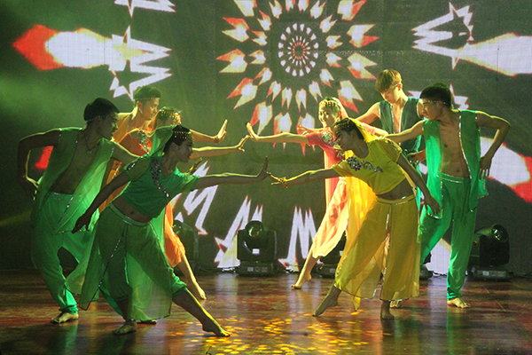 此次演出,舞蹈团热情奔放的印度舞《旋转婆罗多》作为压轴节目获得了现场阵阵掌声。由于舞台场地限制,演出前2个小时,在艺术团团长汪陆斌和舞蹈团团长刘绪丽的带领下,大家迅速重新调整了人员和队形,丝毫没有影响整支舞蹈的表演效果。晚会结束后,学生处处长、团委书记朱兆健慰问了大家,他对同学们的精彩表现表示赞赏,并鼓励大学生艺术团应多与外校交流。在此次晚会中,我们也欣赏到了其他高校较为新颖的节目形式。今后,大学生艺术团将不断加强与外界的艺术交流,促进永利官网大学生艺术团不断成长,不断进步。