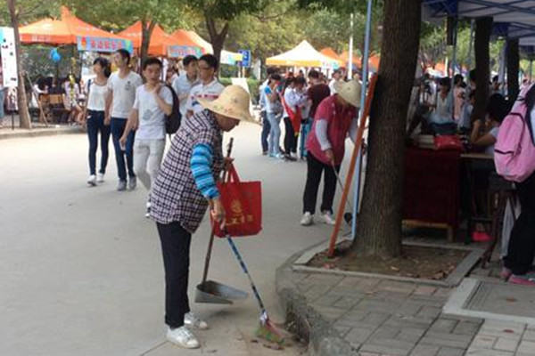 迎新期间,由于人流量大,垃圾激增,总务处分片区设置流动保洁组,并增加了环卫班次,及时清运垃圾,时刻保持校园环境的干净整洁。