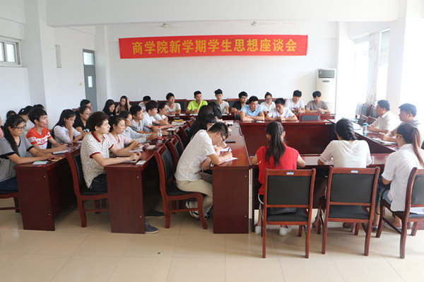 本网讯(通讯员:崔风波)为及时了解学生暑假期间学习生活、社会实践和开学后学生的思想动态。9月8日中午,商学院召开了新学期学生思想座谈会,商学院副院长王飞、学管秘书崔风波和各班级学生代表等60余人参加了座谈会。