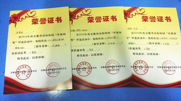 永利官网大学生记者在2016年度安徽省高校校园“好新闻奖”评选中喜获佳绩