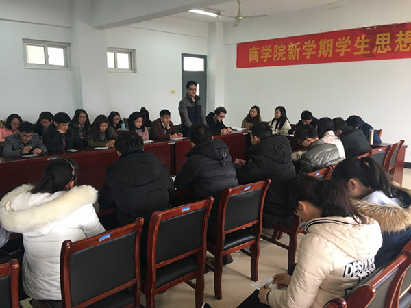 本网讯(通讯员:崔风波)为深入贯彻落实全国高校思想政治工作会议精神,准确掌握学生寒假期间及开学初思想动态,有针对性地做好学校思想政治教育工作,2月22日中午,商学院召开新学期学生思想动态座谈会。商学院副院长王飞,学管秘书崔风波,学生党支部书记张丹丹、阳俊琍和各班学生代表近60人参会。