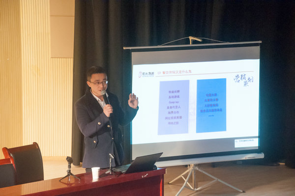 徐涛从当年对专业学习的态度出发,结合自己五年的工作经验和所取得的成绩,分别从什么是餐饮营销、怎样写有趣的餐饮文案,以及当下最流行和实用的营销技巧等几个方面作了精彩的报告。在近三个小时的报告中,徐涛还和在校的广告学专业学生们进行了互动,系统地解析了营销策划的具体工作流程,解答了学弟学妹们在学习广告学专业过程中的困惑。