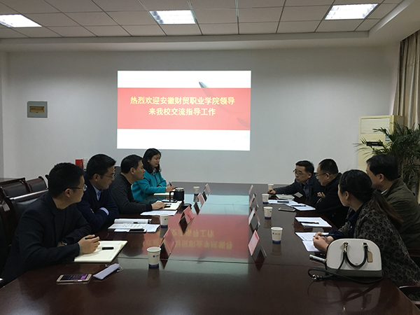 本网讯(通讯员:罗振林)3月24日,安徽财贸职业学院招生就业处处长陶云龙、总务处处长张爱民、就业处副处长许勇、就业处创新创业干事陈曦一行四人来校交流工作,学生处处长汪俊东、产业处副处长孙成伟出席交流会,会议由汪俊东主持。