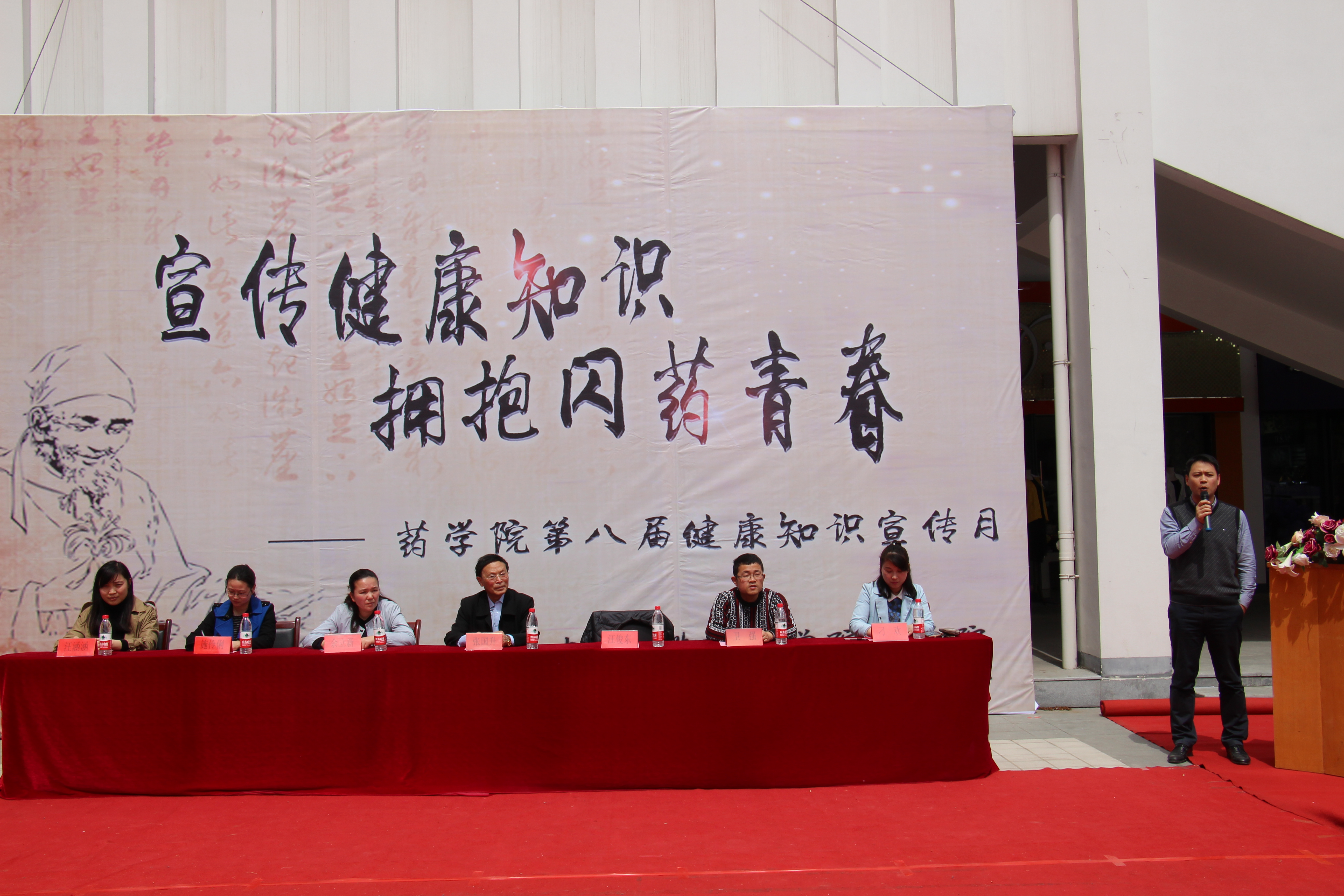本网讯(通讯员:刁欢)为加强全校师生的健康意识,传播健康养生的理念,3月28日中午,药学院第八届健康知识宣传月在三期生活广场正式开幕。校团委书记、学生处处长汪俊东,药学院院长张国升、副院长余立新、相关专业教师、辅导员及各学生社团代表参加了开幕式。