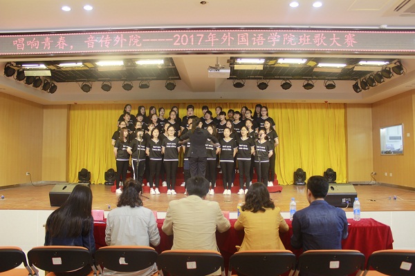 本网讯(通讯员:万媛媛)为迎接、宣传、贯彻党的十九大精神,引导广大学生继承“五•四”运动的光荣传统,弘扬学生的爱国主义精神和集体主义精神,增强学生的历史使命感和爱校意识,外国语学院于4月20日中午在三期小礼堂举办了班歌比赛。外国语学院副院长周景、学管秘书万媛媛、辅导员刘庆、黄梦及李靖担任比赛评委,比赛由徐珊珊、高勇主持。