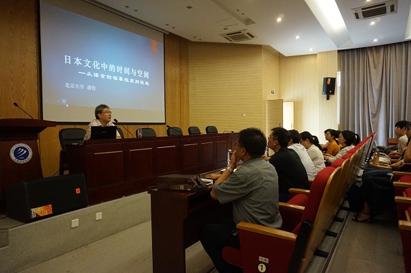 本网讯(通讯员:赵明)9月23日上午,外国语学院联合科研处举办了“亚洲共同体”系列学术讲座第三讲——“日本文化中的时间与空间”。讲座在学术报告厅隆重举行。校科研处副处长张帆、外国语学院执行院长邵玲、副院长王志宏及日语系全体师生参与聆听本场讲座。本次讲座嘉宾是中日教学研究会副会长、北京大学外国语学院博士生导师潘钧教授。日语系主任宋志强担任主持人。