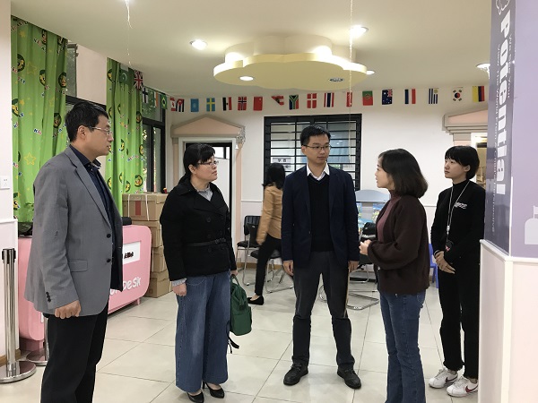 本网讯(通讯员:马兰  摄影:马兰)为拓宽2018届毕业生实习实训就业平台,10月12日上午,外国语学院执行院长邵玲,副院长王志宏、周景及行政秘书4人赴合肥市吉的堡幼儿园开展调研。