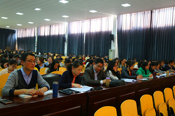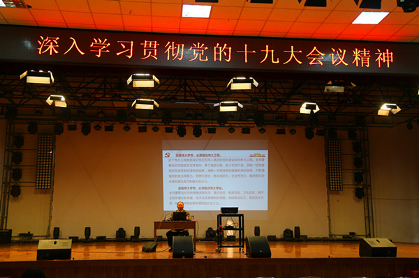 本网讯(通讯员:代长彬)为深入学习宣传贯彻党的十九大精神,将全校师生的思想统一到十九大精神上来,11月8日,永利官网召开“深入学习贯彻党的十九大会议精神”学习交流会,思政部主任吴兆雪作学习宣传贯彻党的十九大精神主题宣讲,思政部全体成员及800名学生代表参加宣讲会。