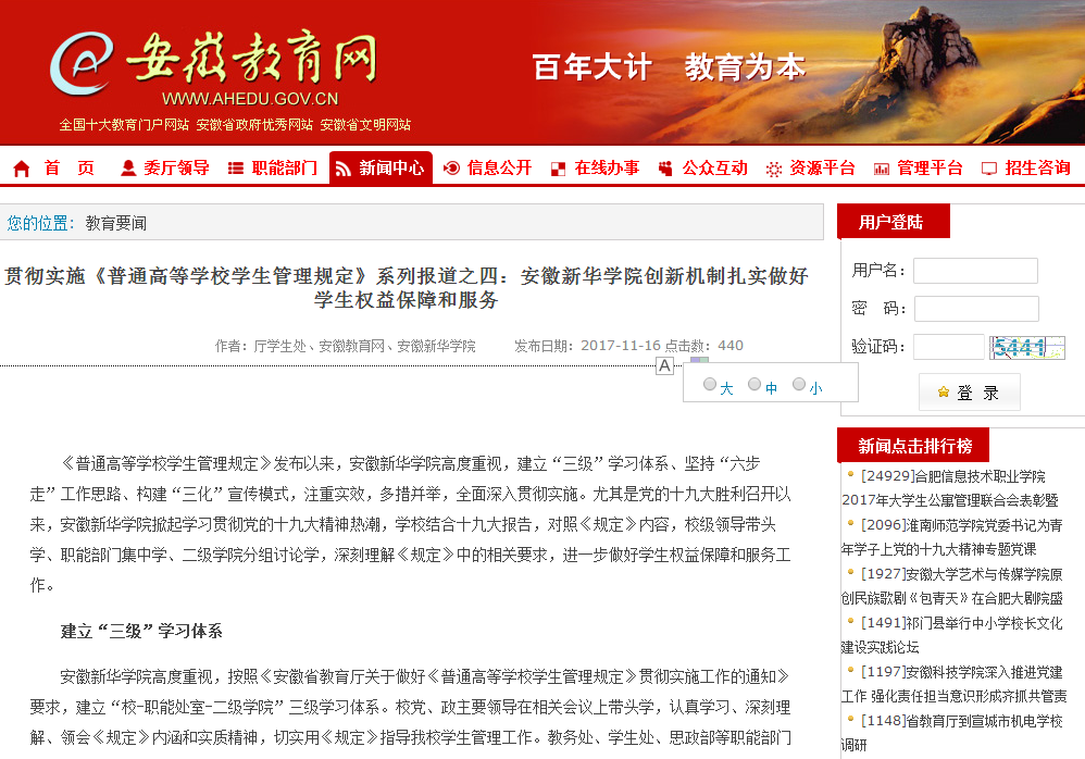 安徽教育网专题报道永利官网贯彻实施《普通高等学校学生管理规定》工作