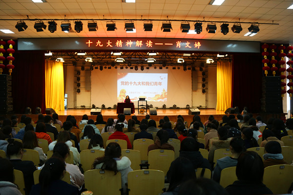肖文婷作为科学社会主义学科研究领域权威专家,以其扎实的理论功底和独到新颖的视角,紧扣十九大与当代青年大学生这一主旨,立足“新时代”“新思想”“新征程”三条主线,她指出,广大青年学生要做新时代的担当者、新理论的追随者、新征程的创造者。她希望广大青年学生不忘初心,牢记使命,坚定崇高理想信念,为实现中华民族伟大复兴的中国梦不懈奋斗。