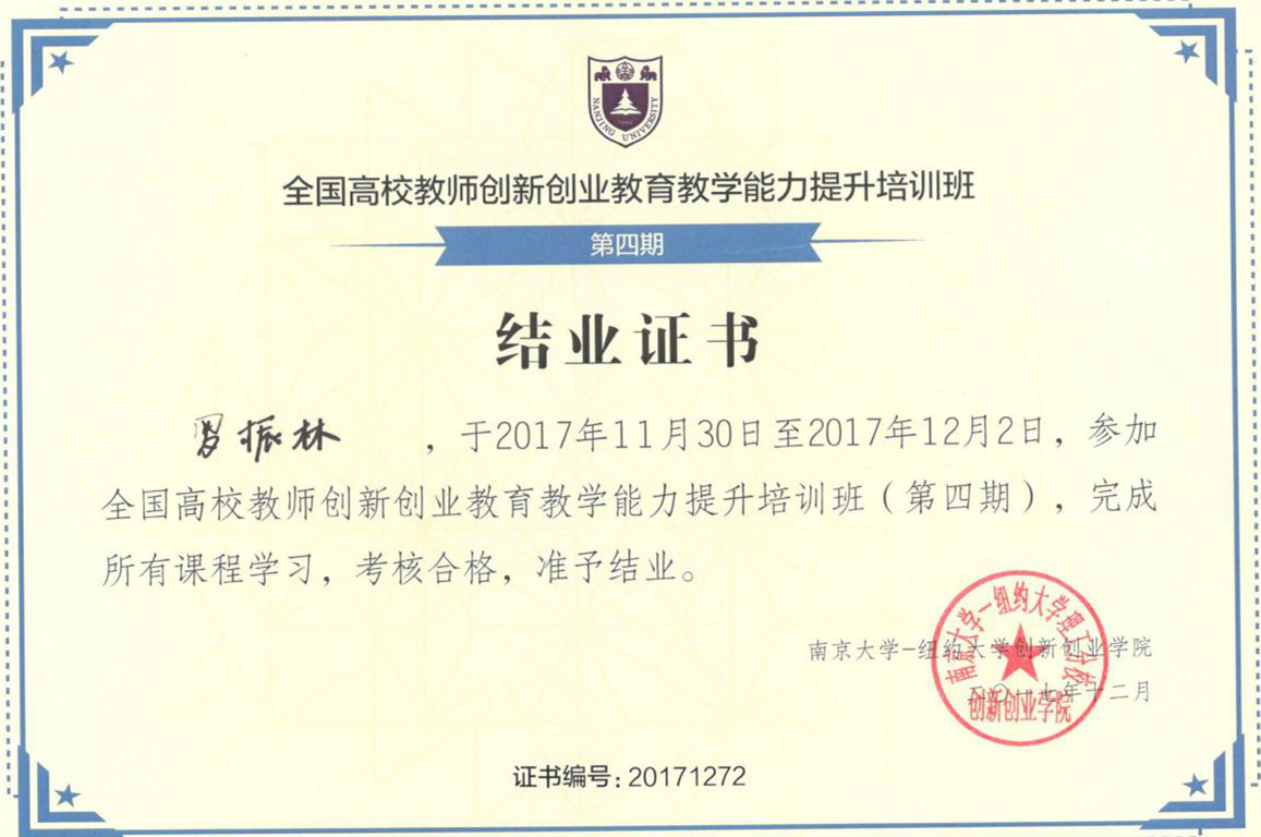 本网讯(通讯员:龚欣)11月30日至12月2日,全国高校教师创新创业教学能力提升培训班(第四期)在南京大学成功举办,来自全国各地20余所高校80余名创新创业教育教学管理人员、课程教师、创业导师等人员参加,永利官网学生处教师代表罗振林参加培训,并获得结业证书。