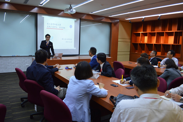 台湾师范大学5位教授就机电类专业前沿课程设置、教学方法和研究方向等方面开展了《深度学习与影像识别》、《平行程式设计》、《总整课程推动-以数位相机设计为例》、《有效提升学习动机的教学策略》、《曼陀罗结合网路再创师生的感动-以感测应用设计为范例》等学术讲座。教授们结合生产中的实际范例以及自身研究方向,通过PPT讲授、短片欣赏、小组讨论等方式开展讲座。在交流会上,学员们就教师成长机制(双能型教师、教师教科研如何平衡)、学生培养方案、学生成才措施等问题与台湾高校专家教授进行了交流研讨。