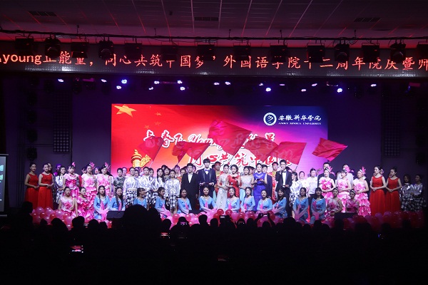 本网讯 (通讯员:万媛媛)12月8日晚,为庆祝建院十二周年,外国语学院在校大礼堂举办 “青春飞young正能量,同心共筑中国梦”十二周年院庆暨师生联欢会。外国语学院全体师生、校友代表观看了晚会。