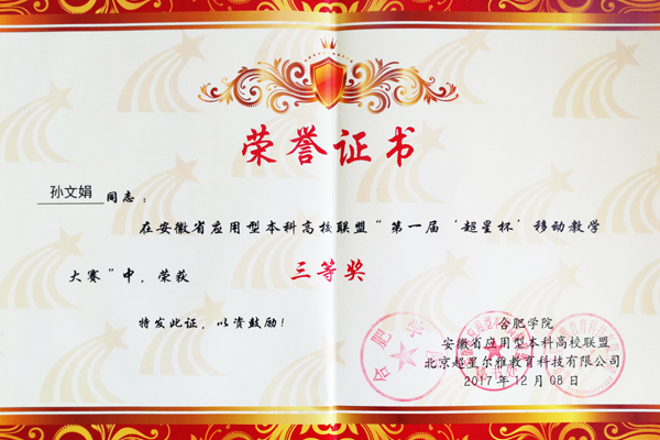 永利官网教师在安徽省应用型本科高校联盟第一届移动教学大赛中喜获佳绩