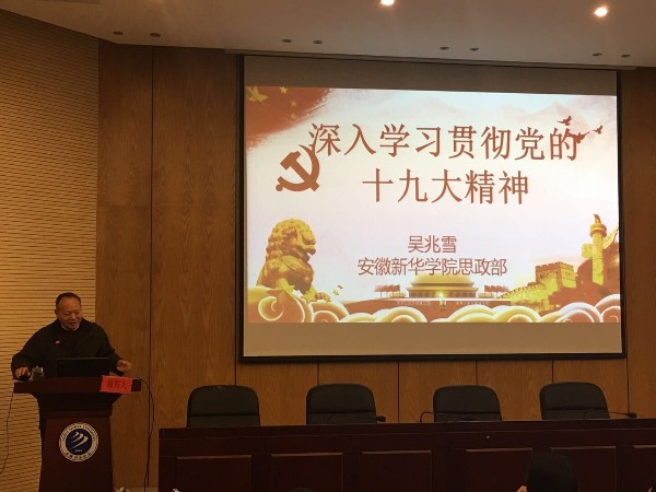 报告会上,吴兆雪运用生动的语言,结合具体工作,详细地介绍了党的十九大的主题内涵,分别从十九大会议主题设置、会议成果、十九大报告的思路和逻辑结构三个方面进行了解读。报告语言精练,重点突出,全面而深入地阐述了习近平新时代中国特色社会主义的思想内涵、基本方略,分析了两个一百年奋斗目标的战略部署以及我国经济社会发展重大战略部署,报告提出要坚定不移推进全面从严治党,高校要有责任和担当,要深刻认识高校思想政治工作的重要性,以习近平新时代中国特色社会主义思想为指导,进一步加强和改进高校思想政治工作。要推动习近平新时代中国特色社会主义思想进教材、进课堂、进头脑;加强党对高校思想政治工作和意识形态工作的领导,进一步落实工作责任制,强化意识形态阵地管理。