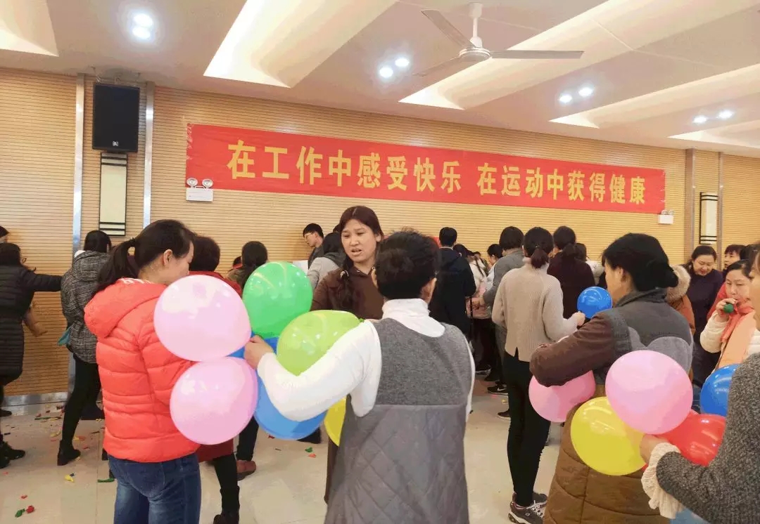 本次活动共设置“十人十一足”“幸运猜猜猜” “快乐呼啦圈”“吹气球炸气球”四个比赛项目,全校共200余名女教职员工按抽签顺序分组参加了各个项目。