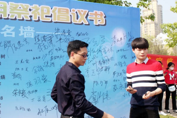 活动现场,动漫学院的志愿者们身着古典汉服向社区居民展示了传统文明礼仪并宣读文明祭祀倡议书。志愿者们还开展了在文明祭祀承诺墙上签名送鲜花、发放宣传册等一系列环节,倡导广大群众做到不搞封建迷信活动,不违规用火,不在山头、林地、墓地烧纸焚香、点燃蜡烛、燃放鞭炮,杜绝火灾和各种不安全隐患的发生,自觉保护生态环境。