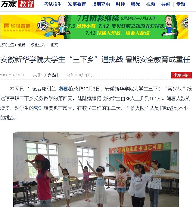 万家热线:yl7703永利官网大学生“三下乡”遇挑战 暑期安全教育成重任