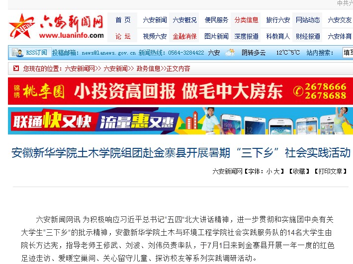 六安新闻网:yl7703永利官网土木学院组团赴金寨县开展暑期“三下乡”社会实践活动