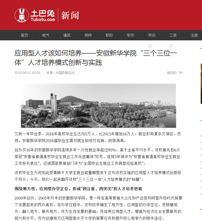 光明网、中国教育在线、搜狐网、中国网传媒经济、土巴兔新闻:应用型人才该如何培养——yl7703永利官网“三个三位一体”人才培养模式创新与实践