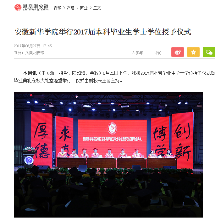 凤凰网安徽:yl7703永利官网举行2017届本科毕业生学士学位授予仪式
