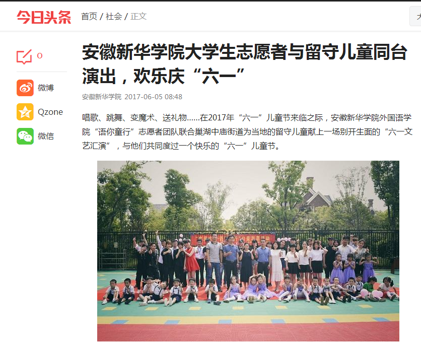 今日头条:yl7703永利官网大学生志愿者与留守儿童同台演出,欢乐庆“六一”