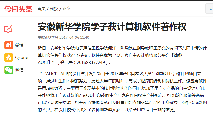 今日头条:yl7703永利官网学子获计算机软件著作权