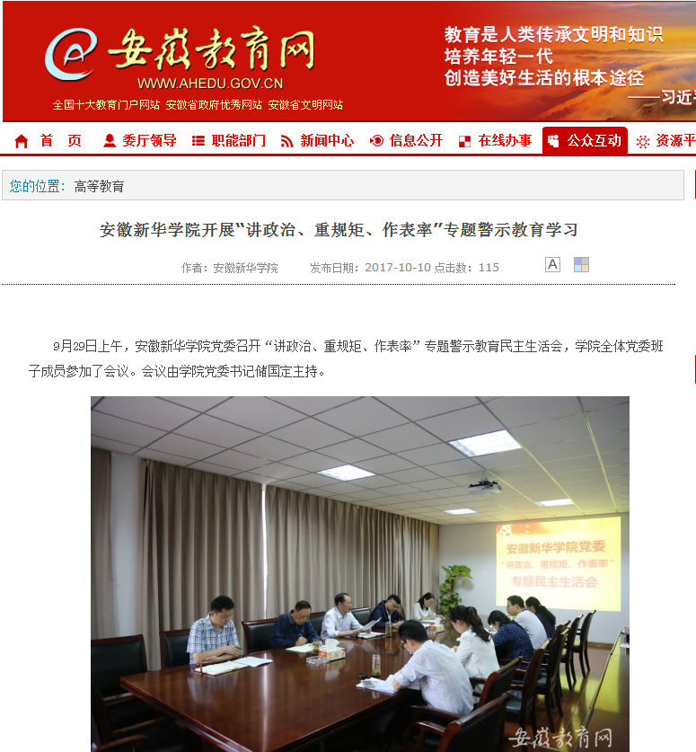 安徽教育网:yl7703永利官网开展“讲政治、重规矩、作表率”专题警示教育学习